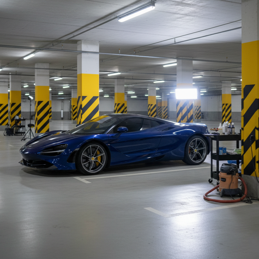 We perform a 3-step paint correction, removing 80–90% of paint defects and achieving a mirror-like